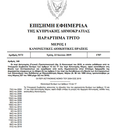 Θυμίζουμε ότι η Ολομέλεια της Βουλής στις 12 Ιουλίου του 2019 ενέκρινε ομόφωνα τους τροποποιητικούς κανονισμούς, σύμφωνα με τους οποίους δίνονται προαγωγές και αυξήσεις μισθών σε αστυνομικούς και πυροσβέστες.