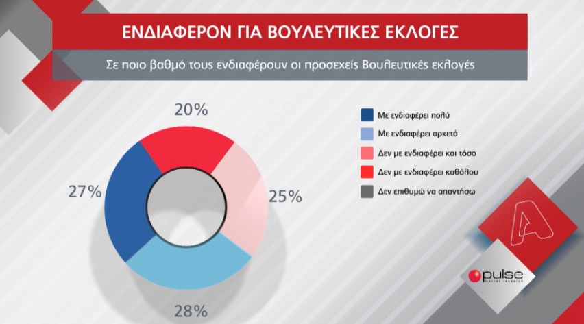 Διχασμένο το ενδιαφέρον για τις βουλευτικές εκλογές, το 55% να ενδιαφέρεται αρκετά ή πολύ και το 45% όχι και τόσο ή καθόλου.