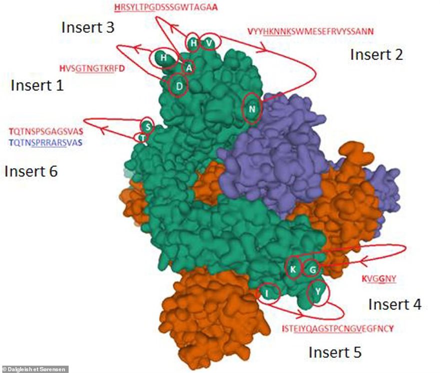 Μιλώντας στην DailyMail.com, ο Νορβηγός καθηγητής ιολογίας Sørensen είπε ότι όλα τα αμινοξέα έχουν θετικό φορτίο, το οποίο προκαλεί τον ιό να προσκολληθεί στα ανθρώπινα κύτταρα, όπως ένας μαγνήτης . Αλλά επειδή, όπως οι μαγνήτες, τα θετικά φορτισμένα αμινοξέα απωθούν το ένα το άλλο, είναι σπάνιο να βρεθούν ακόμη και τρία στη σειρά σε φυσικούς οργανισμούς, ενώ τέσσερα στη σειρά είναι «εξαιρετικά απίθανο», είπε ο επιστήμονας. «Οι νόμοι της φυσικής λένε ότι δεν μπορείτε να έχετε τέσσερα θετικά φορτισμένα αμινοξέα στη σειρά. Ο μόνος τρόπος για να το πετύχεις αυτό είναι εάν το κατασκευάσετε τεχνητά», δήλωσε χαρακτηριστικά.