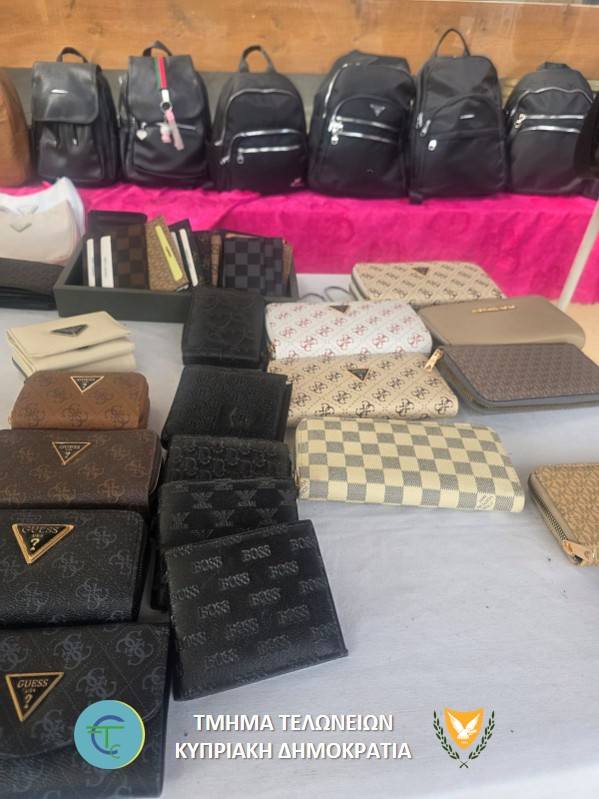 Συγκεκριμένα, στις 2 Οκτωβρίου μετά από αξιολόγηση πληροφοριών και συντονισμένη επιχείρηση του Τμήματος Τελωνείων με μέλη του Γραφείου Καταπολέμησης Αδικημάτων Κλοπής Πνευματικής Ιδιοκτησίας και Παράνομων Στοιχημάτων της Αστυνομίας, πραγματοποιήθηκε έρευνα, σε λυόμενα υποστατικά πλανόδιων πωλητών στην εμποροπανήγυρη του Αγίου Κυπριανού στο Μένοικο, κατά την οποία εντοπίστηκαν ποσότητες ειδών που παραβιάζουν Δικαιώματα Διανοητικής Ιδιοκτησίας (απομιμήσεις).