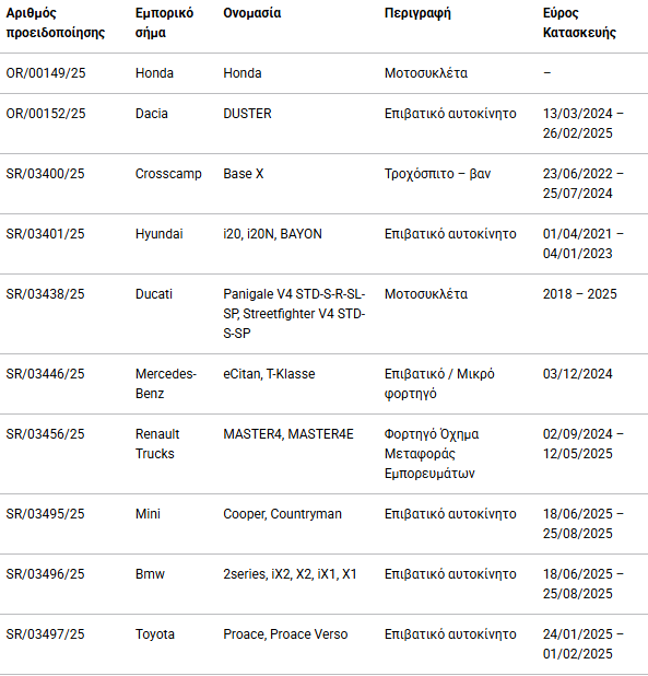 Περισσότερες λεπτομέρειες για τα επικίνδυνα προϊόντα μπορούν να ανακτηθούν μέσω του Safety Gate, χρησιμοποιώντας τον αριθμό προειδοποίησης κάθε προϊόντος.