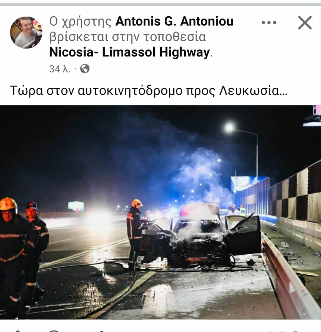 Το όχημα είχε κατεύθυνση από Λεμεσό προς Λευκωσία και ακινητοποιήθηκε από τη φωτιά στο ύψος του ζυγιστικού σταθμού στα Λατσιά.