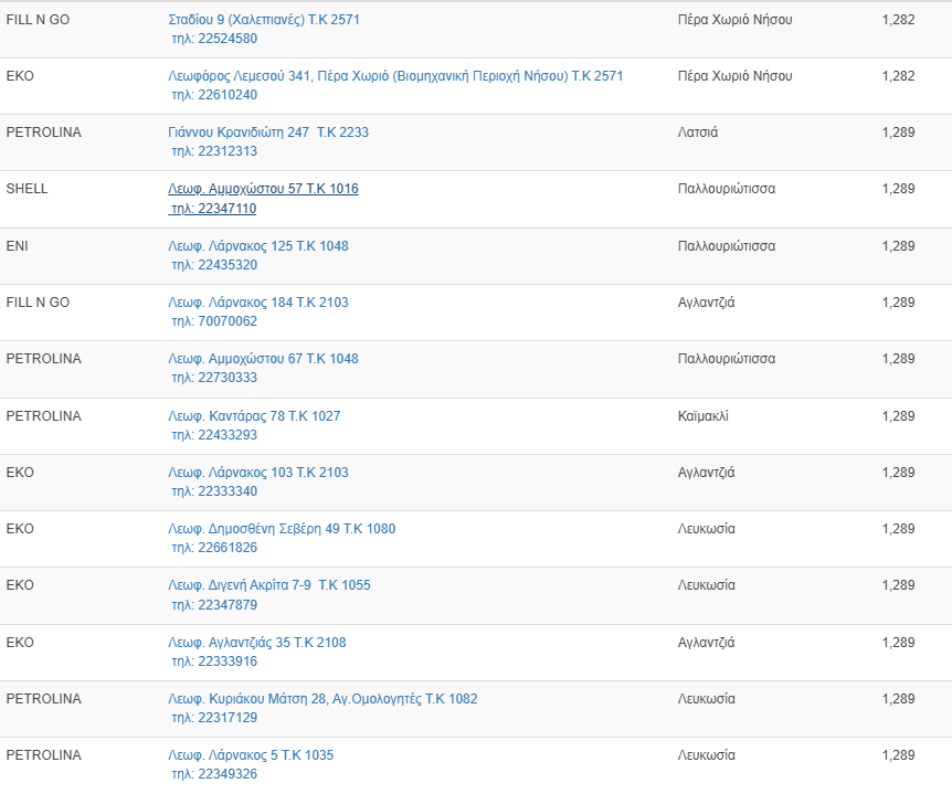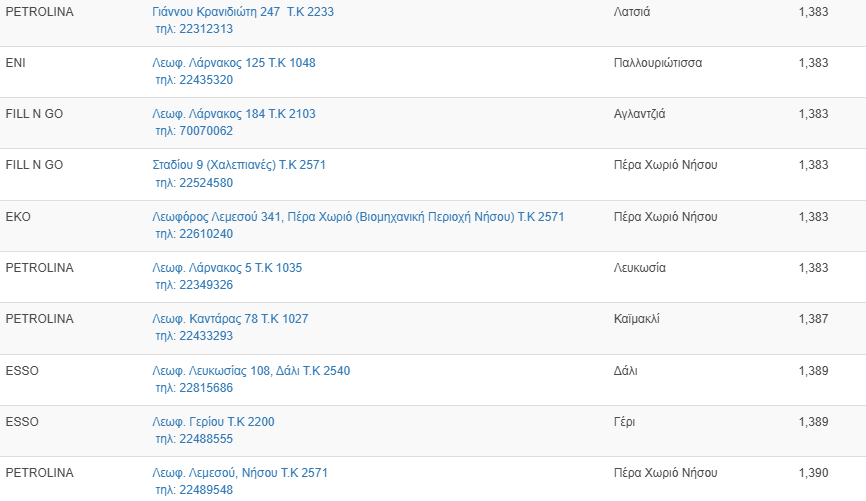 Σχετικά με το πετρέλαιο κίνησης, η μέση τιμή του παγκύπρια κυμάνθηκε στα €1,440, με την φθηνότερη να ήταν € 1,383 και την ακριβότερη €1,598.