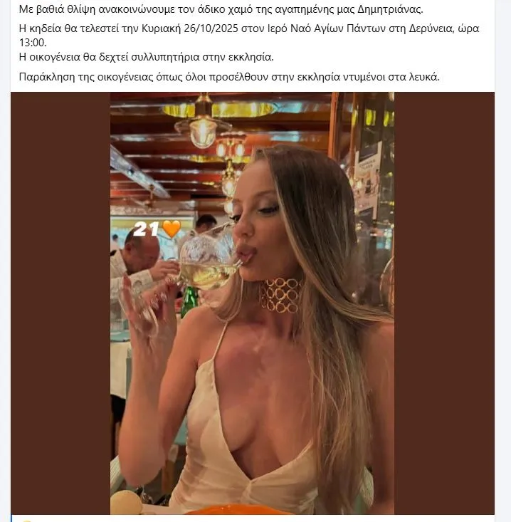 Σε ανάρτηση φίλοι και συγγενείς αποχαιρετούν την 21χρονη.