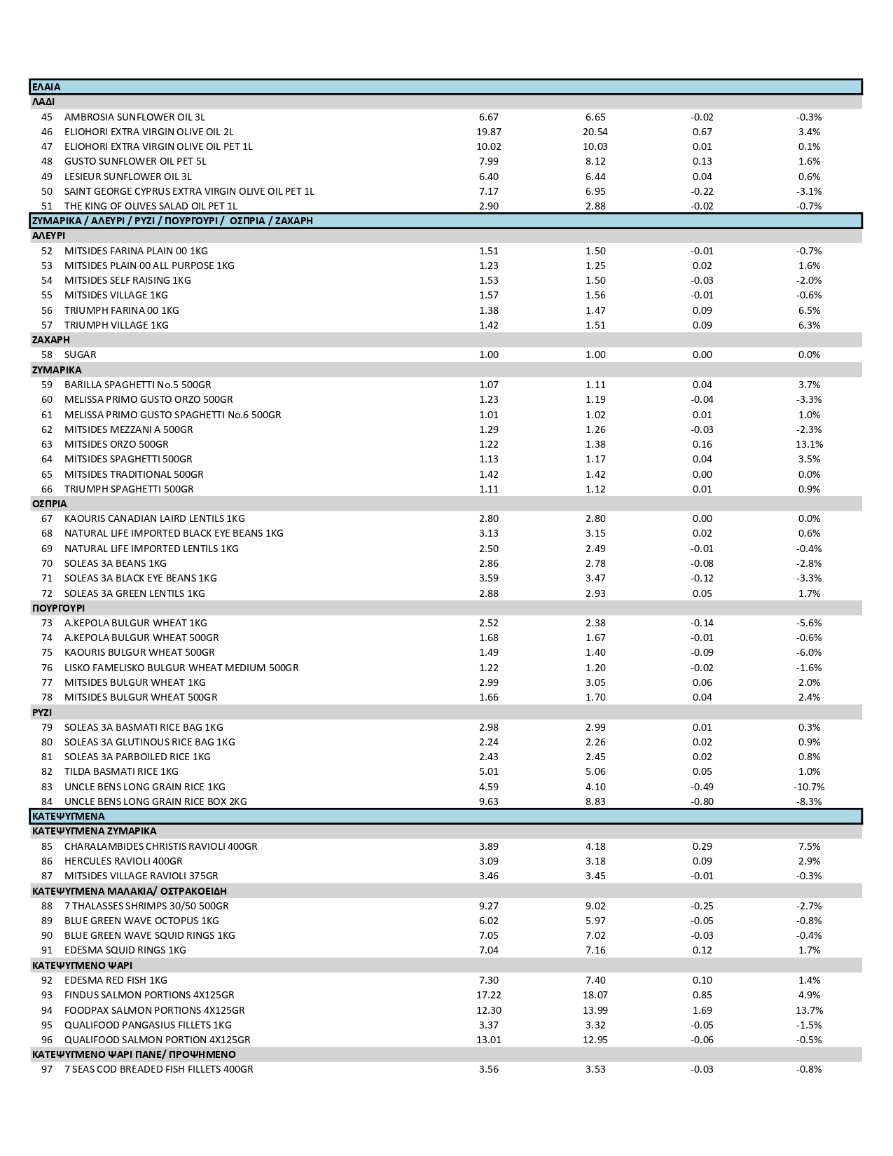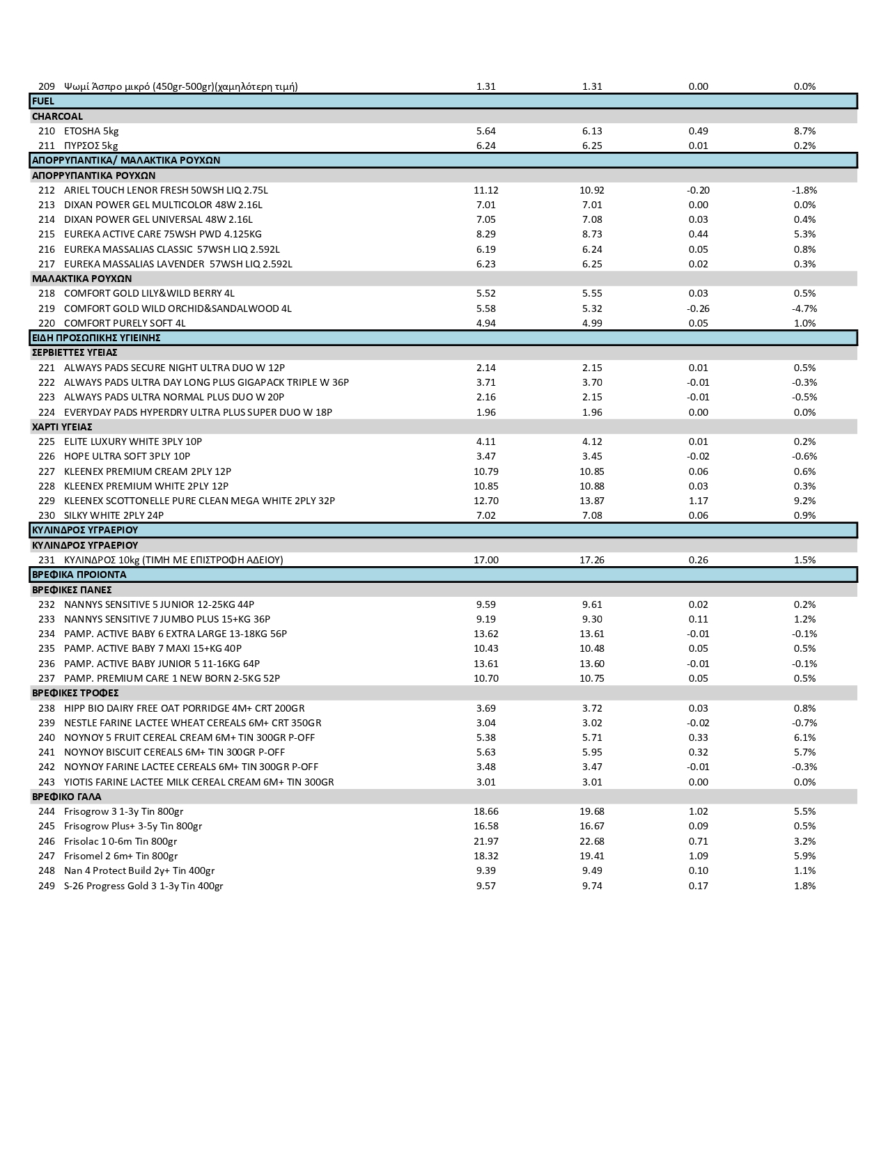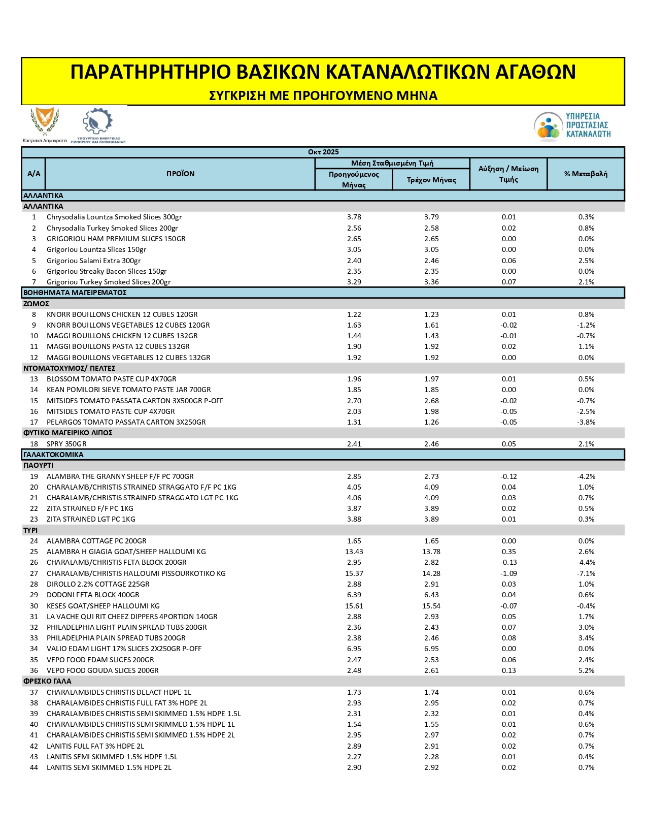 Σύγκριση τιμών: Σεπτέμβριος 2025 - Οκτώβριος 2025