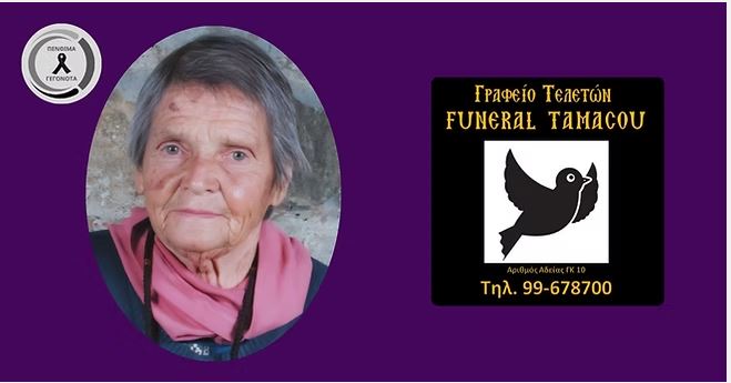 Παράκληση της οικογένειας είναι όπως αντί στεφάνων να γίνονται εισφορές για τις εκκλησίες της κοινότητας.