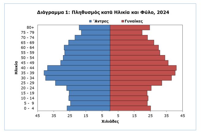 Τα παιδιά κάτω των 15 ετών αποτελούν πλέον μόλις το 15,2% του πληθυσμού, ενώ οι ηλικιωμένοι άνω των 65 ετών φτάνουν το 18,3%. Παράλληλα, οι γεννήσεις μειώθηκαν στις 9.766, η μέση ηλικία των μητέρων αυξήθηκε, και οι γάμοι καταγράφουν πτώση.