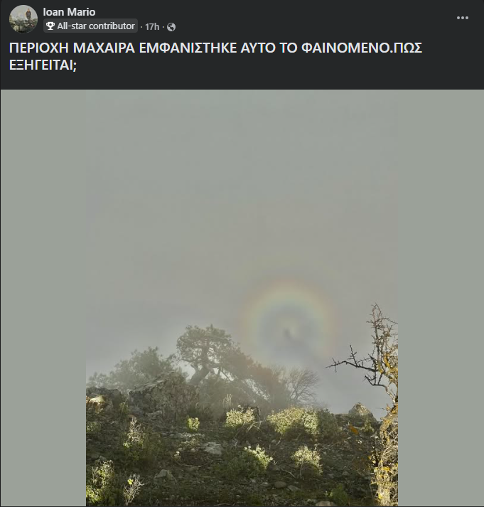 Δέος από «φάντασμα» που εμφανίστηκε μέσα σε ουράνιο τόξο στον Μαχαιρά - Δείτε φωτογραφία