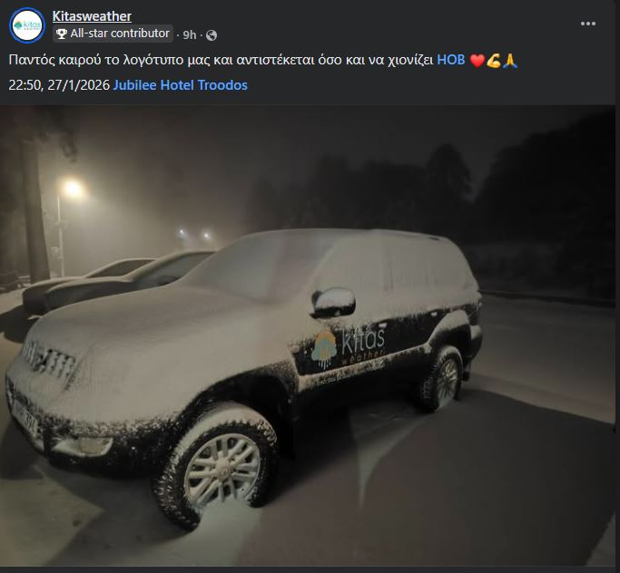 Εικόνα που θυμίζει εξωτερικό το σχεδόν καλυμμένο με χιόνι όχημα του kitasweather.