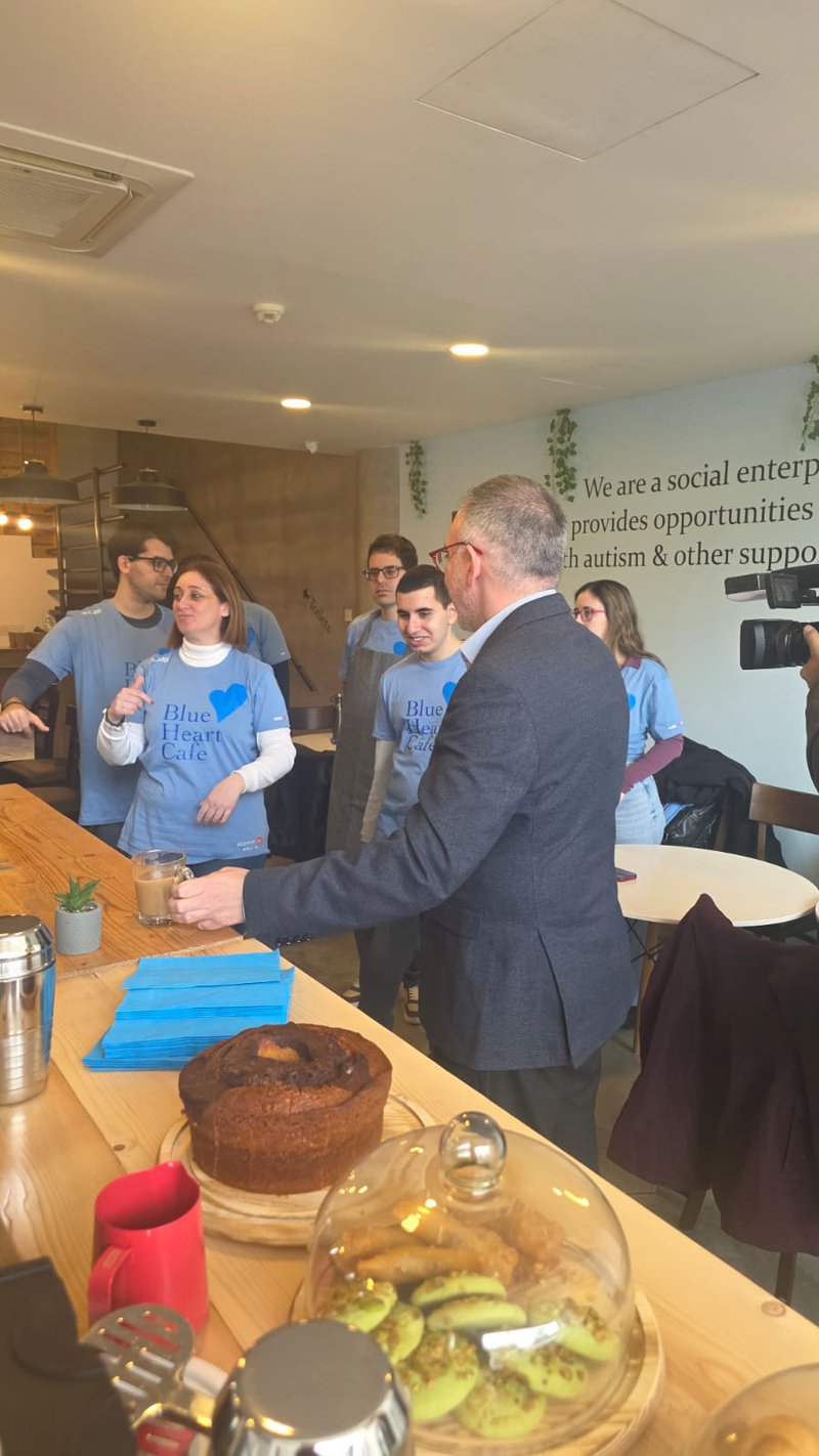 Το Blue Heart Café, ένα σύμβολο αποδοχής, ελπίδας και συμπερίληψης, η πρώτη κοινωνική επιχείρηση στην Κύπρο με επίκεντρο την κοινωνική ένταξη άνοιξε τις πόρτες της την Τρίτη, 27 Ιανουαρίου και κέρασε τον πρώτο της καφέ στον Δήμαρχο Λευκωσίας, Χαράλαμπο Προύντζο.