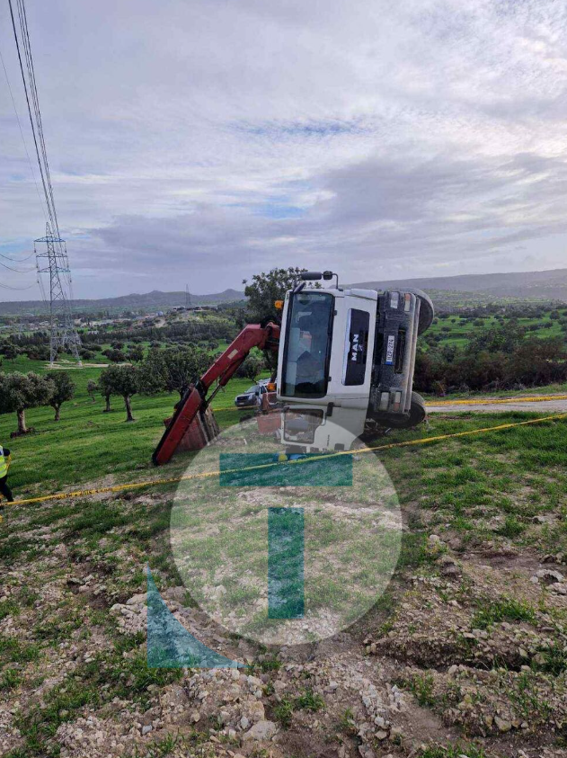 Υπό συνθήκες που τελούν ακόμη υπό διερεύνηση, το φορτηγό φαίνεται να έγειρε προς τα δεξιά, με αποτέλεσμα τον σοβαρό τραυματισμό του εργάτη.
