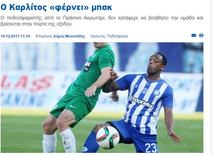 Τελικά ο Καρλίτος δεν δικαίωσε τις προσδοκίες των «κυανόλευκων¨ με αποτέλεσμα να μην υπολογίζεται για το υπόλοιπο του πρωταθλήματος, ενώ ήδη έχουν αναπτυχθεί τα πρώτα σενάρια επιστροφής του στην Κύπρο.