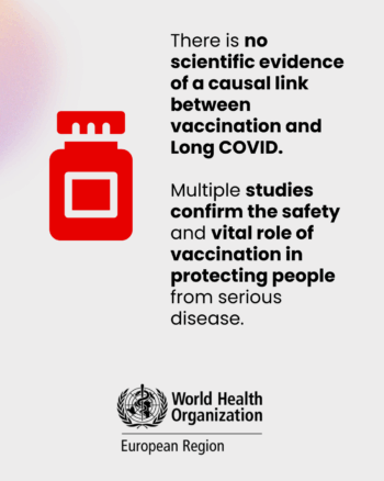 «Δεν υπάρχουν επιστημονικές ενδείξεις για αιτιώδη σύνδεση ανάμεσα στον εμβολιασμό και τη long COVID. Πολλές μελέτες επιβεβαιώνουν την ασφάλεια και τον κρίσιμο ρόλο του εμβολιασμού στην προστασία από σοβαρή νόσο».