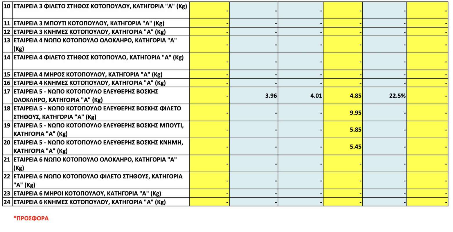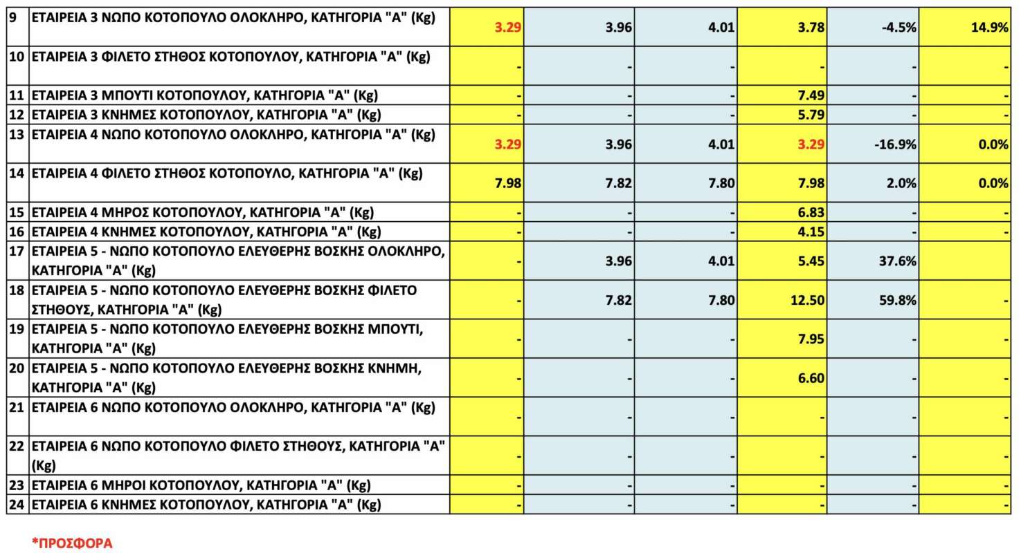 Παράλληλα την πορεία των τιμών για όλα τα είδη φρέσκου κρέατος καταγράφει η Υπηρεσία Προστασίας Καταναλωτή ενόψει Πάσχα. Σύμφωνα με τα στοιχεία, καταγράφεται αύξηση τόσο σε σύγκριση με το περσινό Πάσχα όσο και συγκριτικά με τις τιμές που καταγράφηκαν τους δύο προηγούμενους μήνες.
