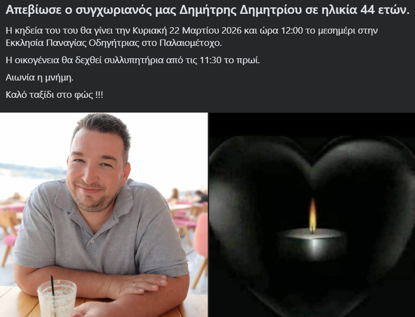 Θλίψη σε συγγενείς και φίλους σκόρπισε ο θάνατος του Δημήτρη Δημητρίου σε ηλικία 44 ετών.