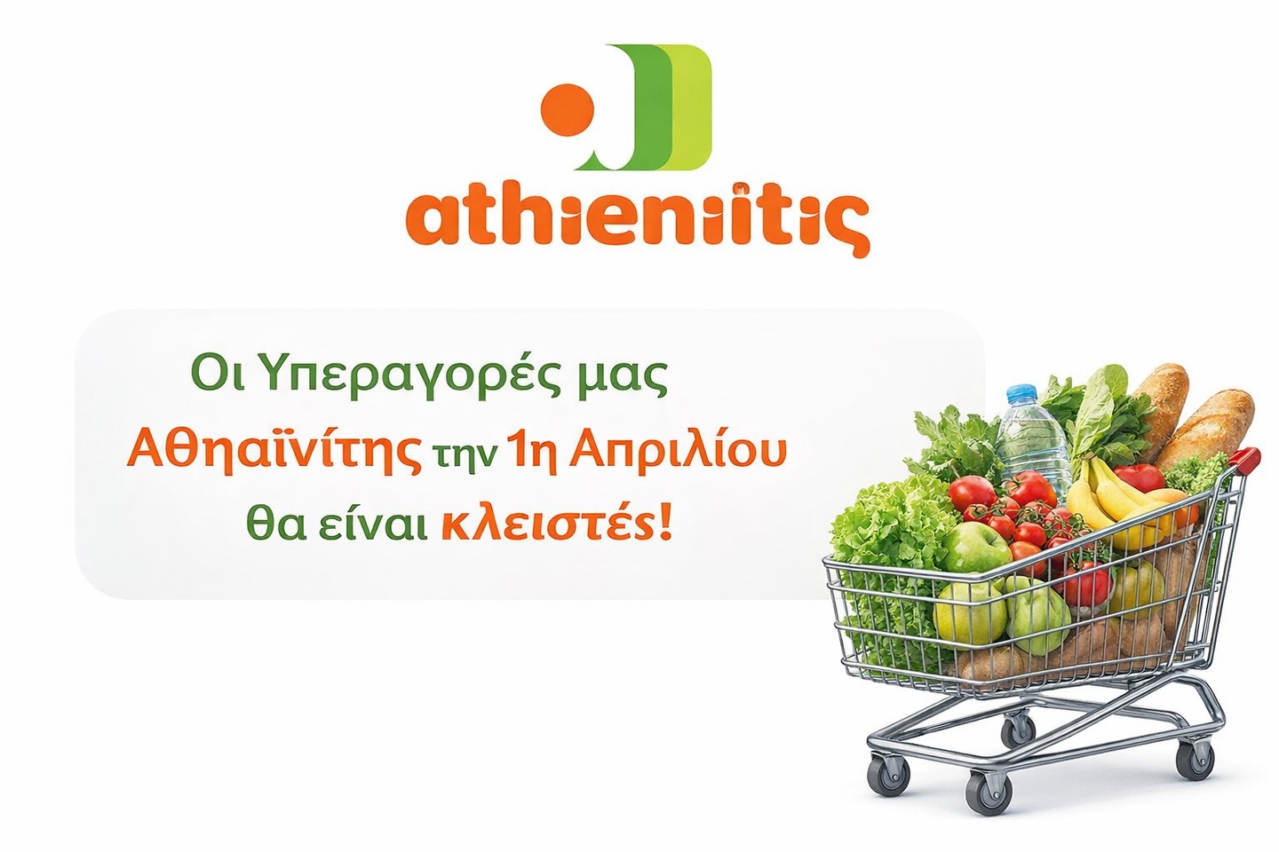 Με την ευκαιρία της αργίας της 1ης Απριλίου, οι καταναλωτές καλούνται να οργανώσουν εγκαίρως τις αγορές τους, καθώς σημαντικός αριθμός υπεραγορών και καταστημάτων θα παραμείνει κλειστός.
