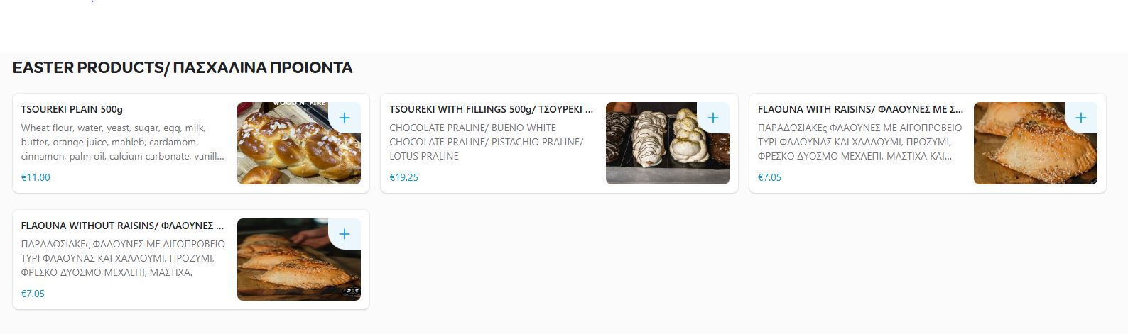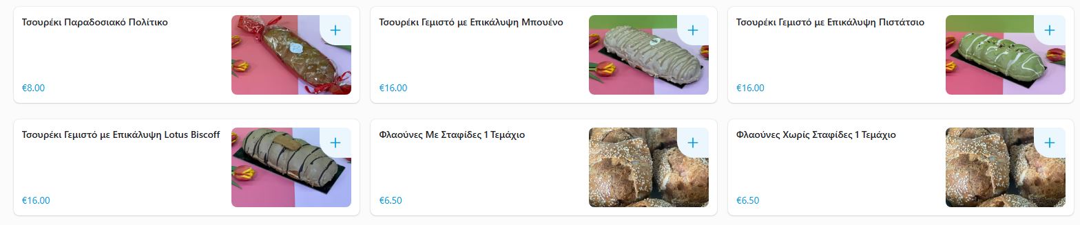 Παράλληλα διαθέτει και τσουρέκια και στο ταψί και σε κουτί σε διάφορες τιμές και γεύσεις από το παραδοσιακό μέχρι Ντουμπάι σοκολάτα.