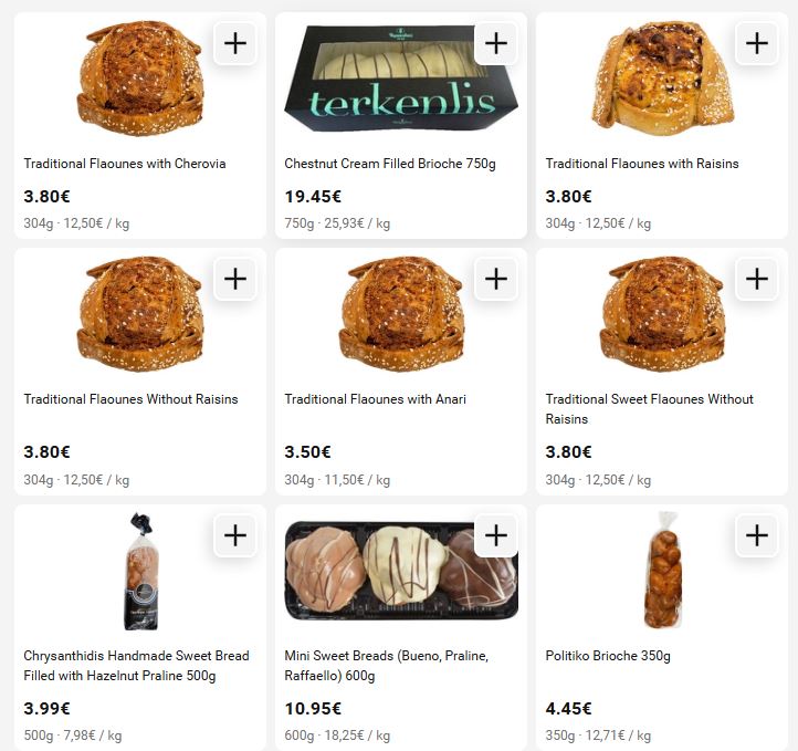 Constantinides Bakery – Φλαούνες με σταφίδες 16.90 ευρώ το κιλό ενώ υπάρχει και η επιλογή μαζί με τα γλυκά σας να παραγγείλετε και μία φλαούνα, έτσι για δοκιμή, σε διάφορες εκδοχές.