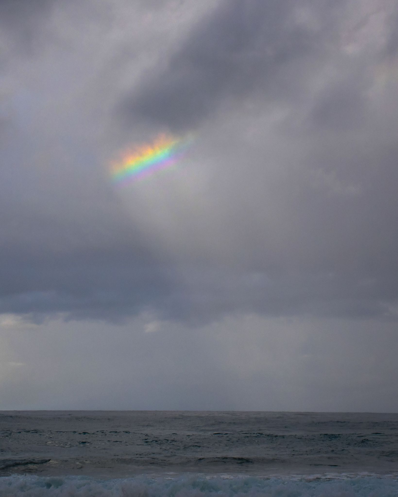 Όπως φαίνεται και στη φωτογραφία, ένα πολύχρωμο τόξο «ξεπροβάλλει» μέσα από τα σύννεφα, δημιουργώντας ένα μαγευτικό θέαμα που θυμίζει ουράνιο τόξο, αλλά σε διαφορετική μορφή.