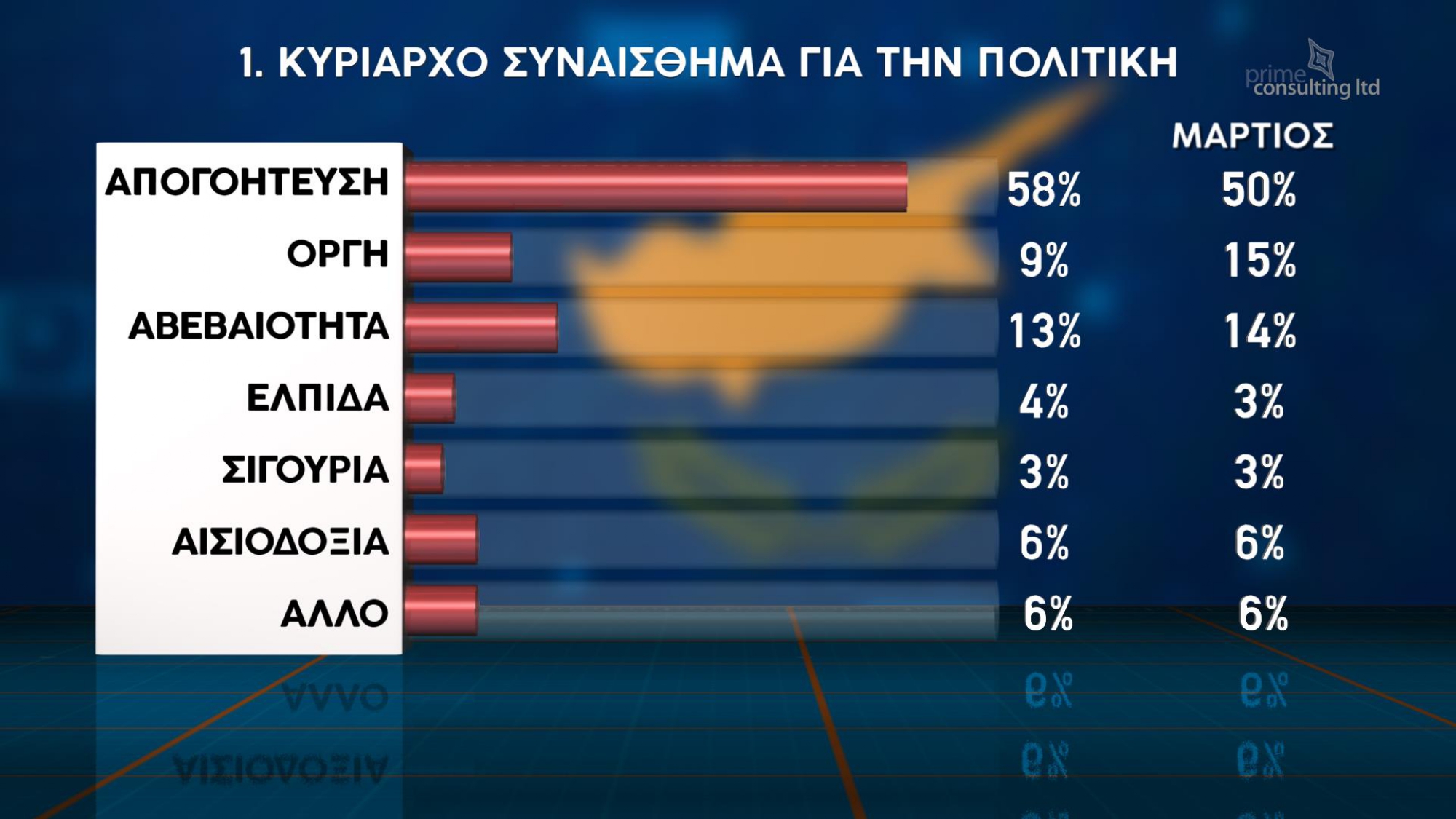 Μεγαλώνει η απογοήτευση που νιώθουν οι πολίτες αγγίζοντας το 58% σε σχέση με 50% στη δημοσκόπηση Μαρτίου.