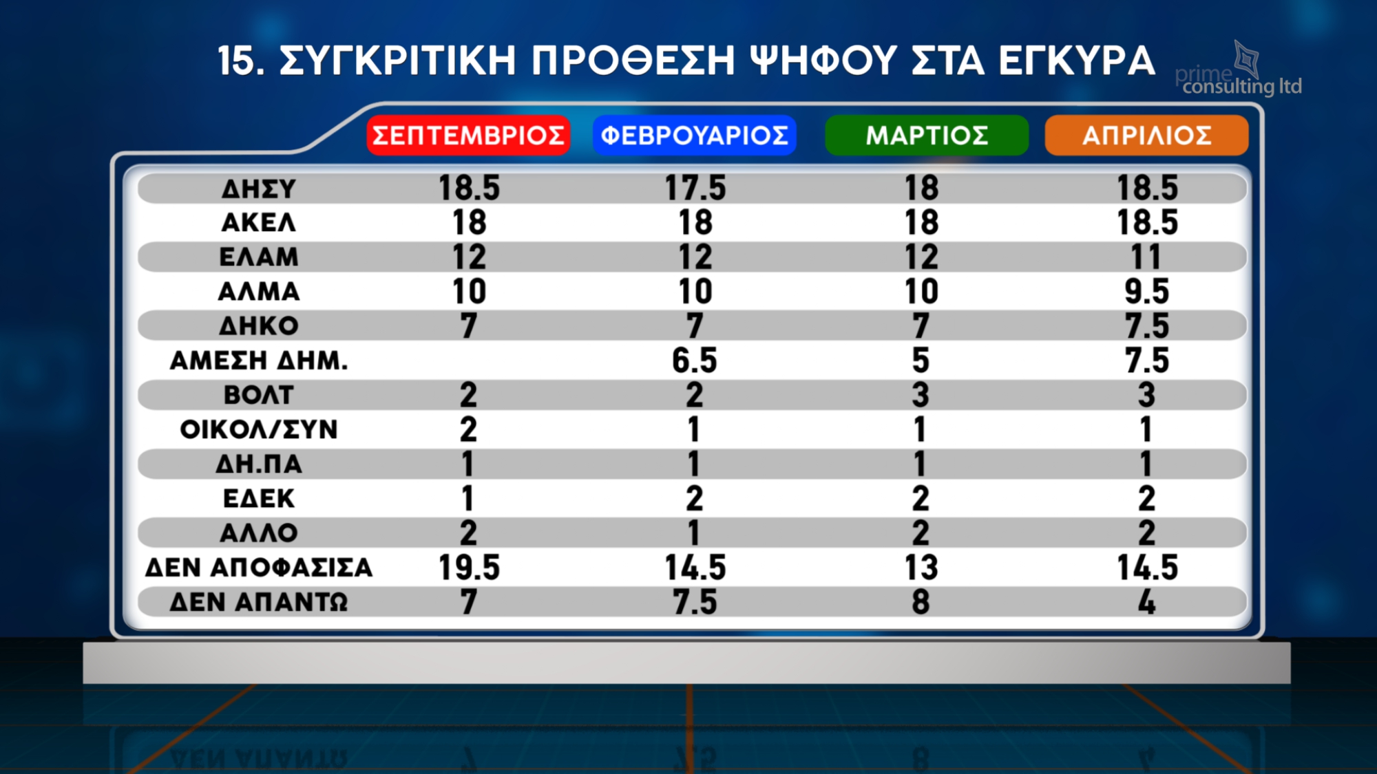 Πρώτο κόμμα περισσότεροι από τους μισούς ερωτηθέντες βγάζουν το ΔΗΣΥ.