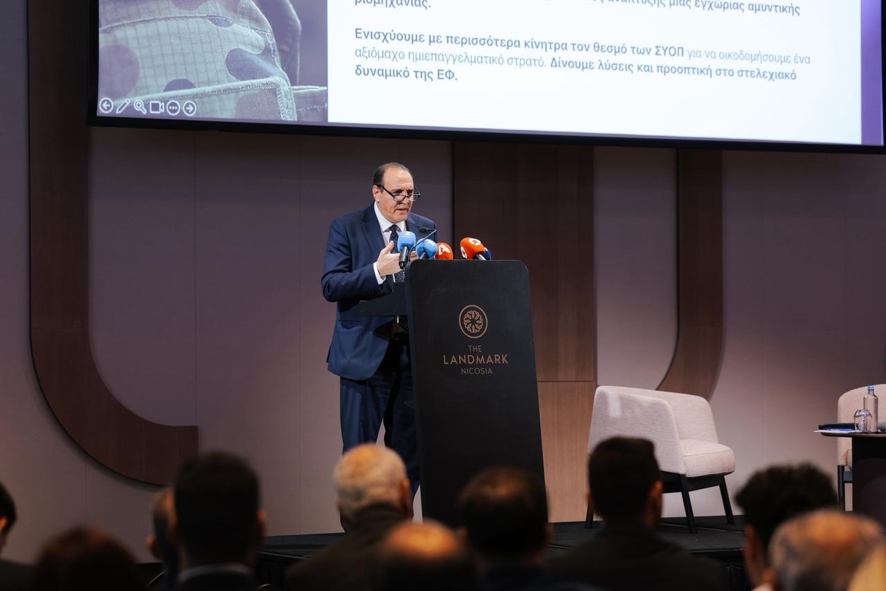 Ιδιαίτερη αναφορά έγινε στις γεωπολιτικές ιδιαιτερότητες της Κύπρου, ως μιας μικρής και ημικατεχόμενης χώρας, που βρίσκεται υπό τη συνεχή απειλή της Τουρκίας και σε μια ευρύτερα ασταθή περιοχή.