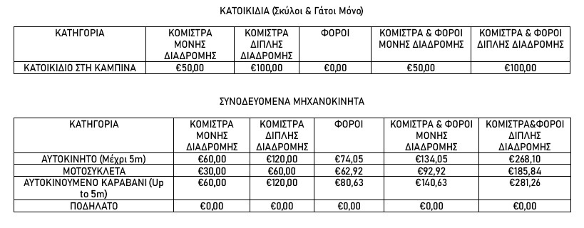 Τιμές εισιτηρίων με κατοικίδια